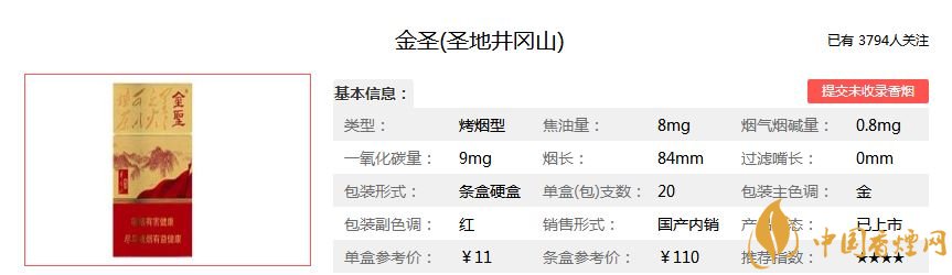 以上就是香烟网小编为大家整理介绍的金圣圣地井冈山香烟的价格及图片,希望为烟民们提供帮助。小编在此提醒大家,吸烟有害健康,希望大家为了自己的身体,能够尽快戒烟。想查询更多香烟内容,请关注香烟网。