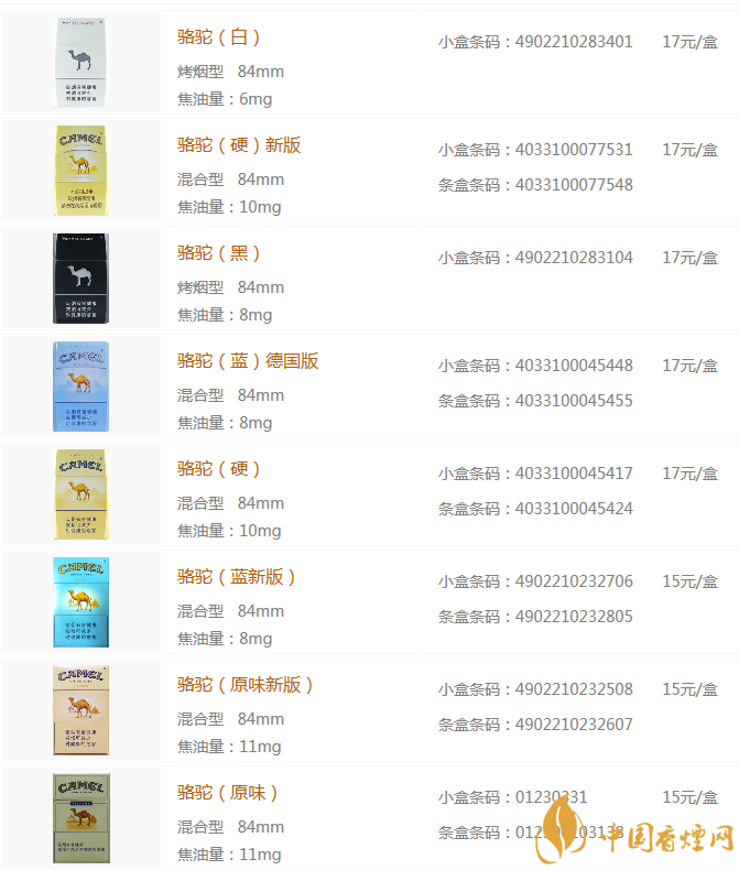 CAMEL(骆驼)烟价格表图