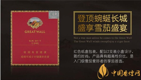 长城雪茄烟盛世5号包装非常的亮眼,主打色为中国红和传统的帝王黄色相结合,整体看上去非常的喜庆,口味是最经典的雪茄本香,这款长城雪茄烟在装配上进行了大改革。长城雪茄烟(盛世5号)多少钱,接下来香烟网小编将为大家介绍长城雪茄烟价格表和图片。